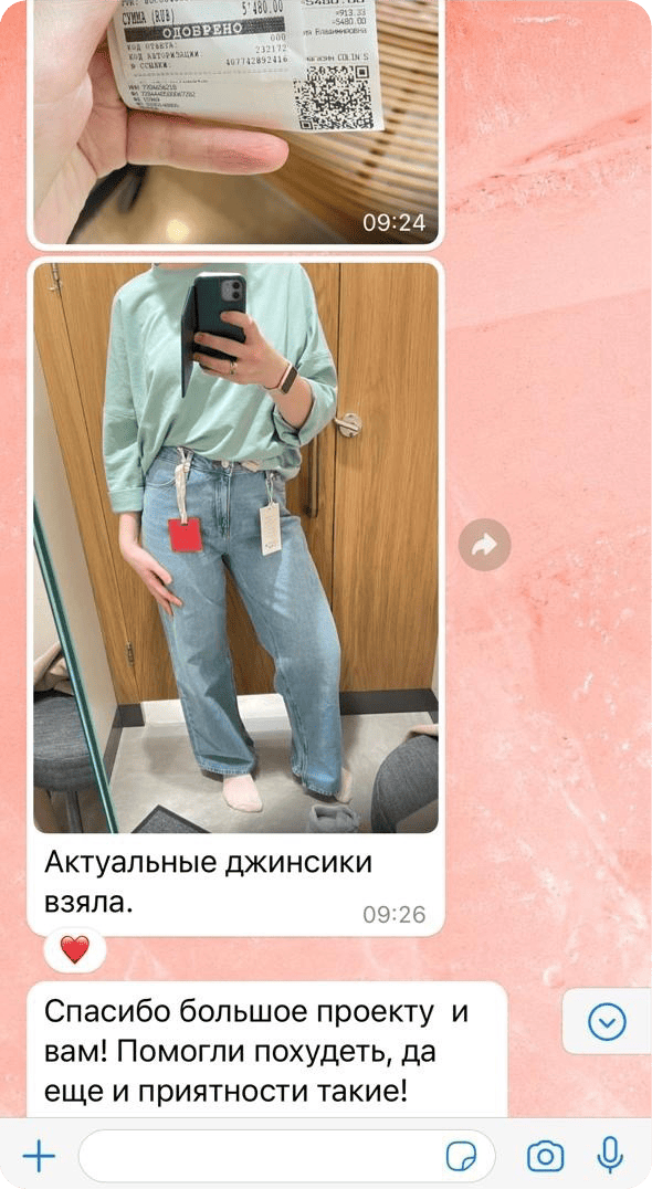 За вами будет закреплен куратор с сертификатами, подтверждающими квалификацию в области Нутрициологии и Спортивного дела. И именно он будет помогать вам выстраивать рацион и каждый день проекта следить за вашим успехом.