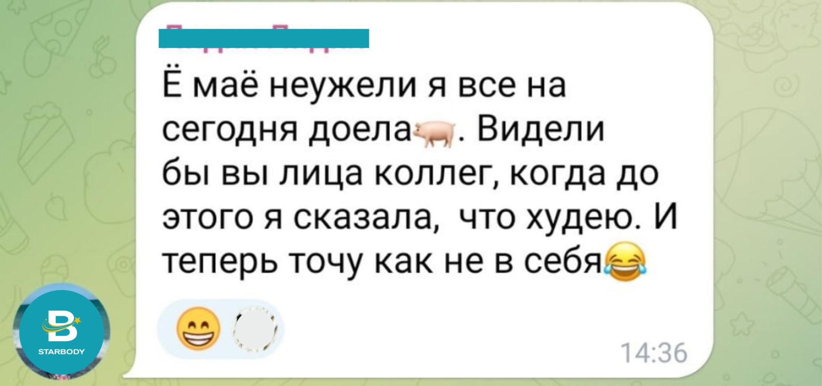 А это отзыв моей подопечной. На работе над ней смеются, что она ест, как не в себя. Никто не верит, что она худеет. Но она не просто находится в процессе. Она и получает огненный результат.