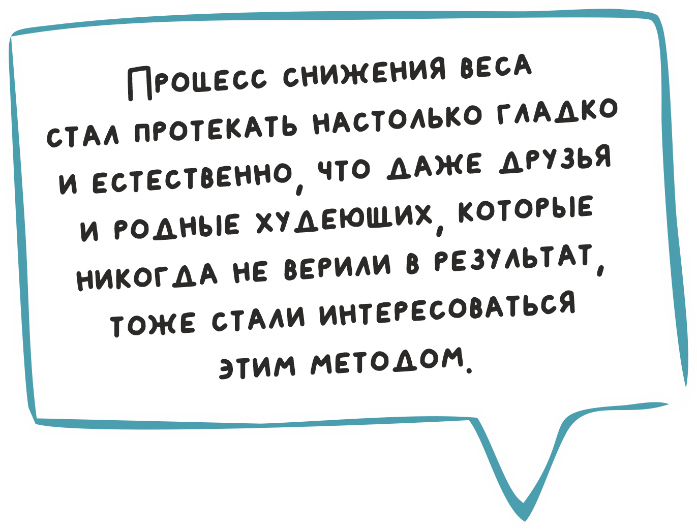 Мои ученики не ограничивают себя в еде, даже в сладком, не умирают в спортзале (а некоторым из них зал в принципе противопоказан по состоянию здоровья), но при этом продолжают худеть.