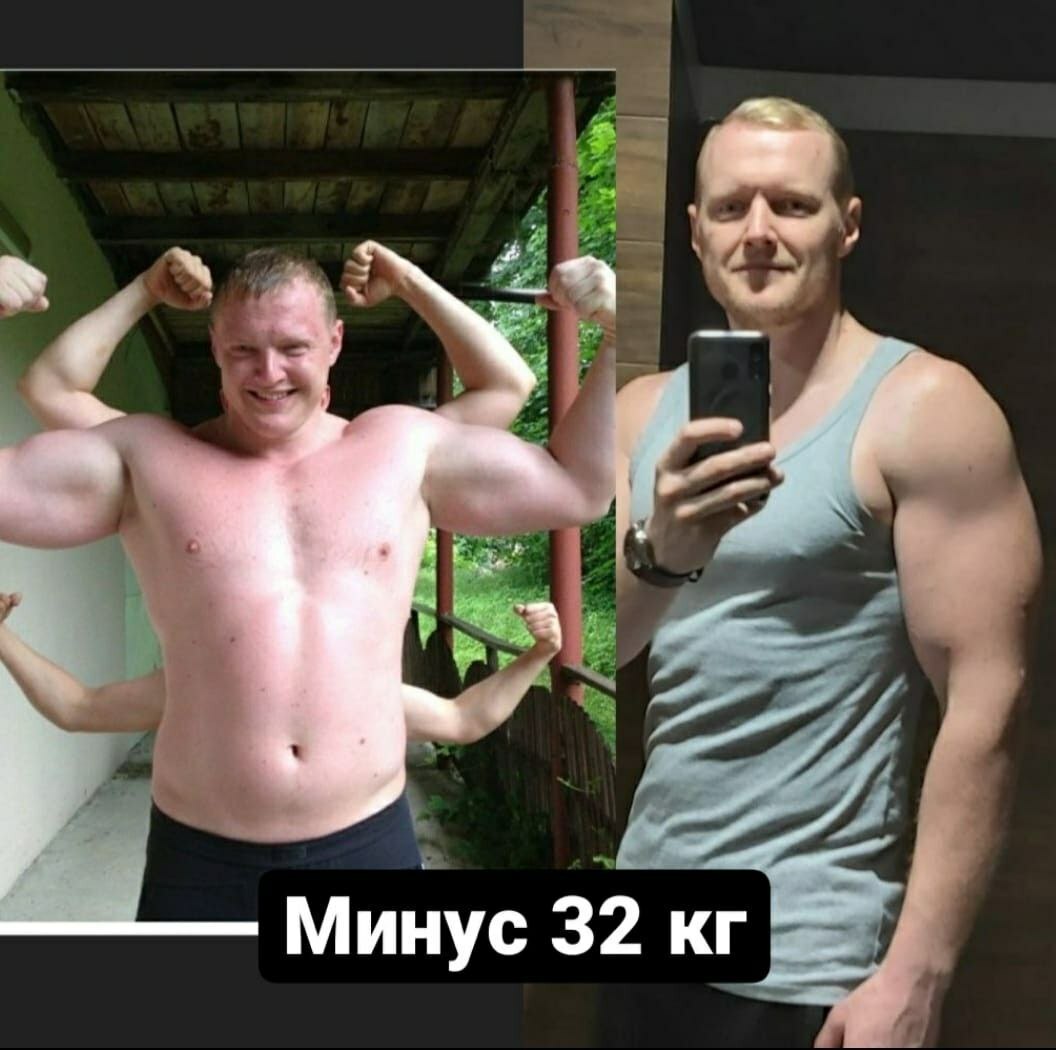 А потом Александр познакомился с моей методикой. За первые 2 месяца он похудел на 18 кг, потом ещё на 10кг и сейчас продолжает работу над своей фигурой. Но это уже совершенно другой человек. При этом вполне позволяет себе любимые блюда, с удовольствием уплетает пиццу и первым выстраивается в очередь за свежей шаурмой.